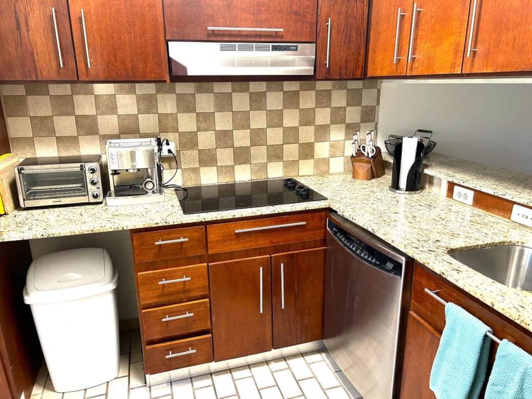 Blender, Coffee machine, Cooking utensils, Dishwasher, Kitchen stove, Kitchenette, Microwave, Oven, Refrigerator, Toaster
