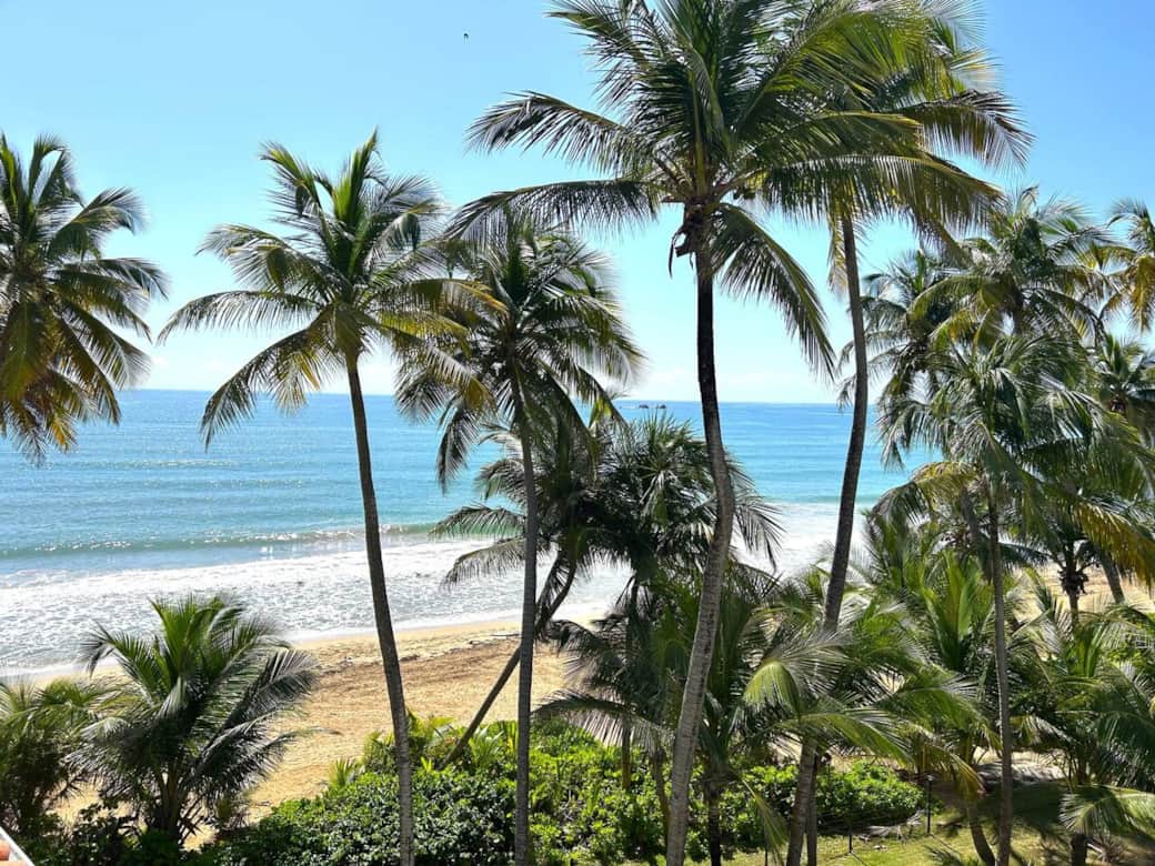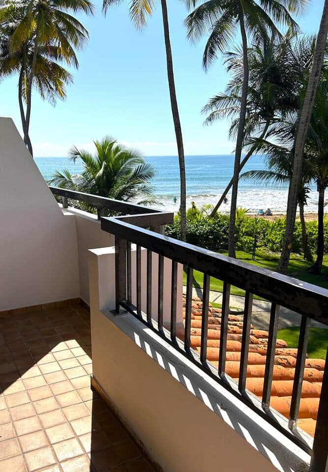 Located on the Beach. Enjoy the peaceful sound of the ocean waves and the million dollar view from your vacation rental. Condo has two bedrooms. Queen size bed in the primary bedroom. And the second bedroom has a bunk bed. The bunk bed has a full size mattress on the lower level and a twin size on the upper level. Each bedroom has its own full bathroom. Sleeps 5. Large roof terrace with outdoor furniture. Located in the Palmas del Mar Resort. Includes two parking spaces.