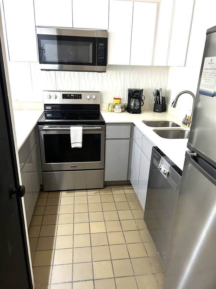 Blender, Coffee machine, Cooking utensils, Dishwasher, Kitchen stove, Kitchenette, Microwave, Oven, Refrigerator, Toaster