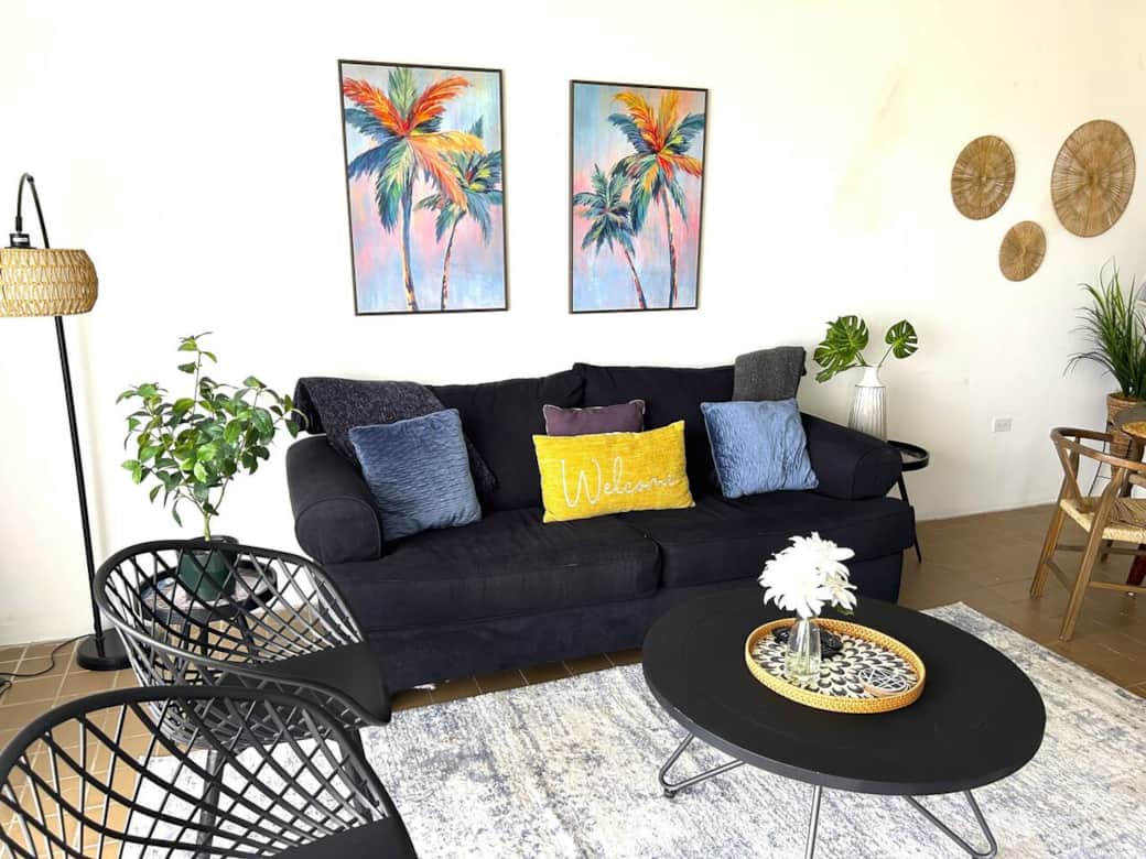 Located on the beach and next to the Wyndham Hotel. Two bedrooms. King size bed in the Main bedroom. A queen size and bunk bed in the second bedroom. Sofa bed in the living room. Includes one parking space. Community Pool included. Great balcony with the best view in Palmas!